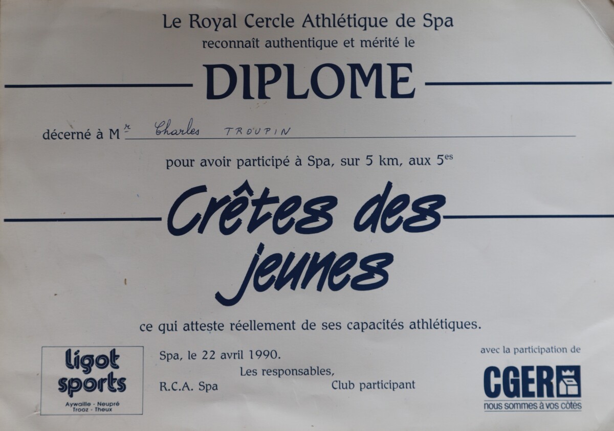Mon histoire avec les Crêtes débute il y a vraiment longtemps. Pas lors de la dernière participation en 2011, mais bien avant, dans les années 1990. À cette époque dans notre école primaire tout le monde en parlait, d’ailleurs notre instituteur Monsieur Dodrimont était connu pour avoir fait les 21 km (une vraie star), chose qui pour nous semblait impossible. De mon côté je m’étais inscrit deux fois aux 5 km. J’en garde un souvenir horrible, j’avais commencé en courant, puis après ça n’avait plus été du tout et un adulte avait dû m’aider. Pour ma défense, à l’époque on n’expliquait pas trop aux enfants qu’il ne fallait pas commencer trop vite…
